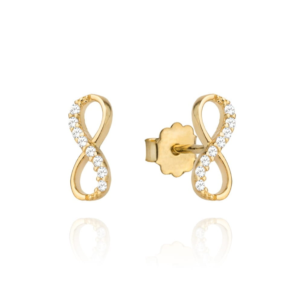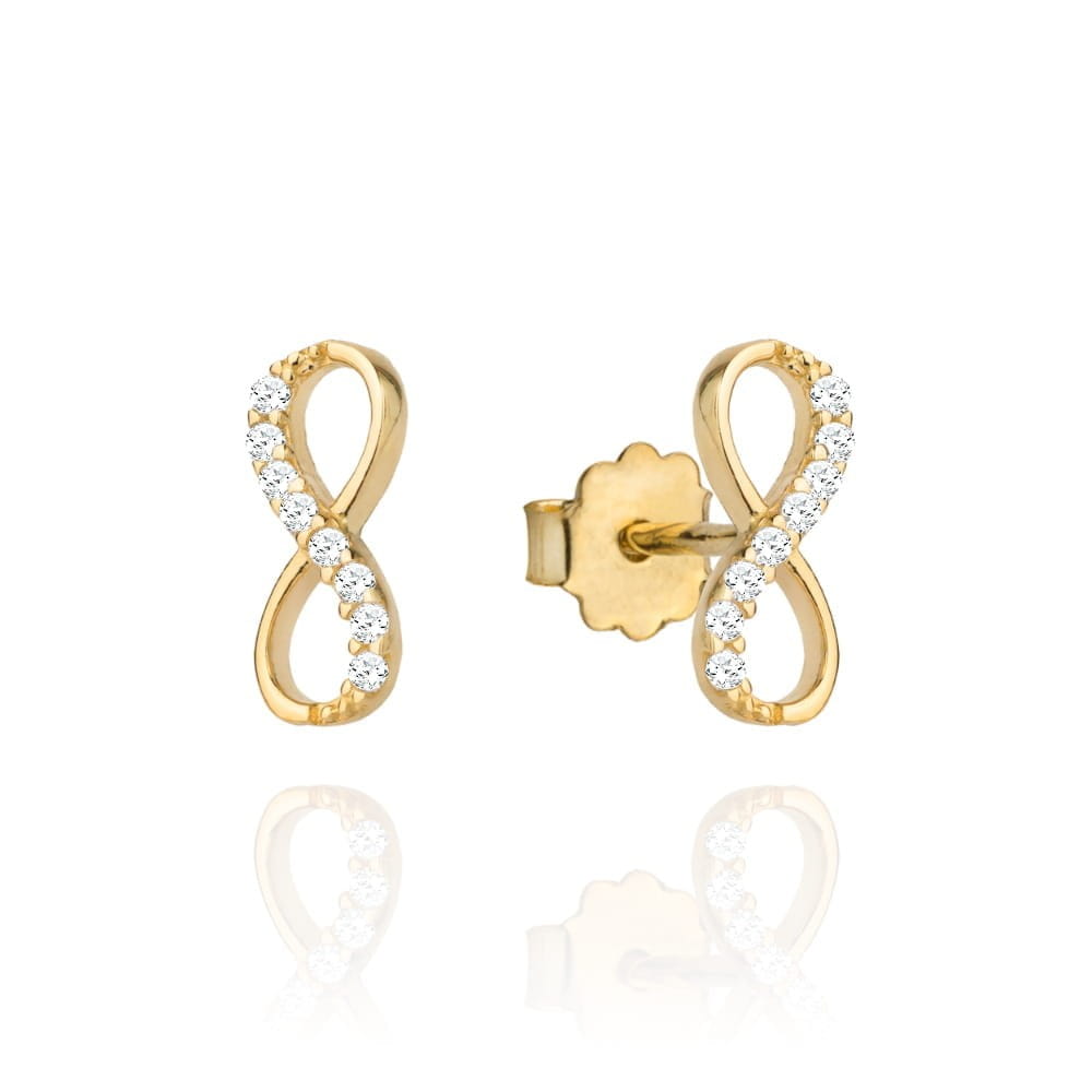 Kolczyki złota nieskończoność z częścią cyrkonii na sztyfcie