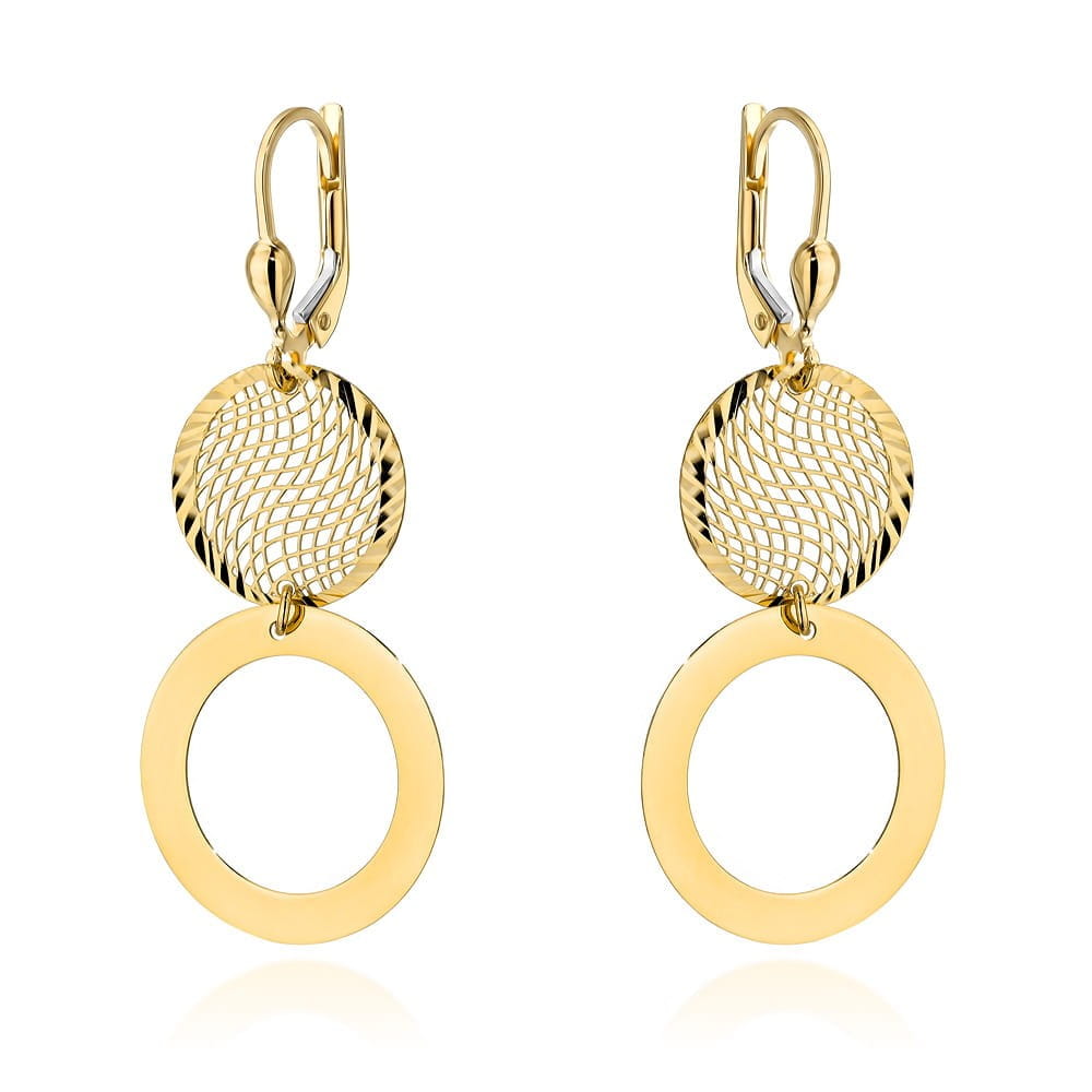 Kolczyki złote ażurowe koło i ring na angielskim zapięciu