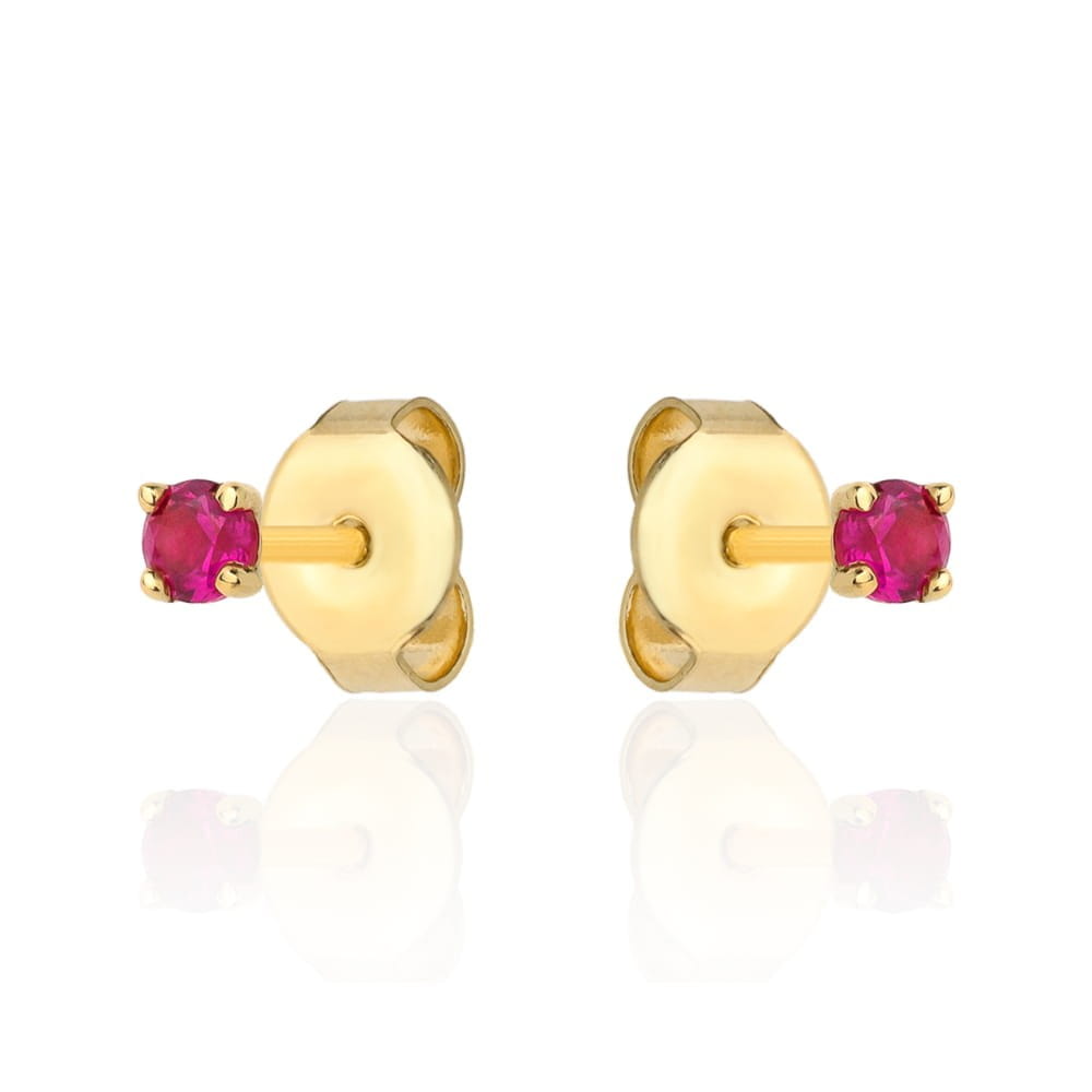 Kolczyki złote centralna rubinowa cyrkonia