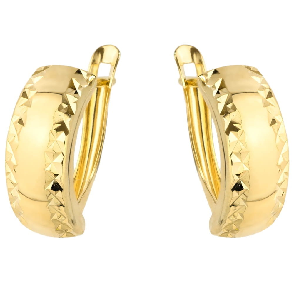 Kolczyki złote diamentowane na obu brzegach szer. 5 mm próba 585