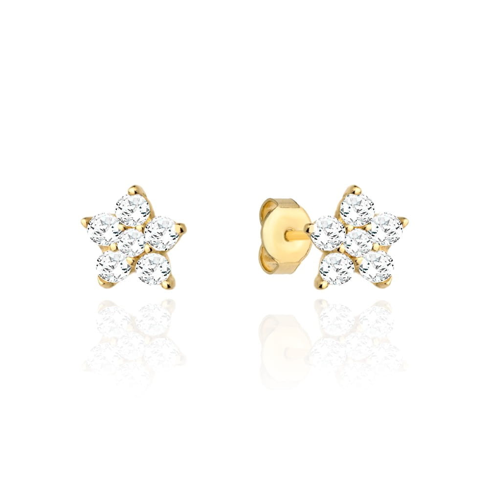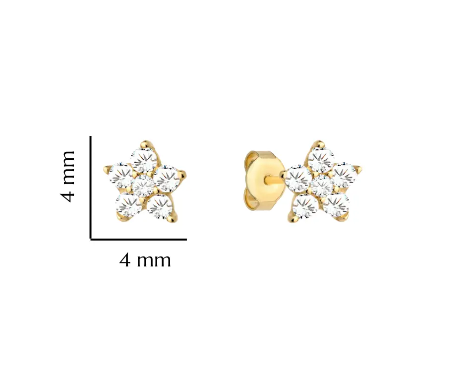 Kolczyki złote dla dziewczynki kwiatuszki próba 585 sztyft/ Chrzest, Roczek
