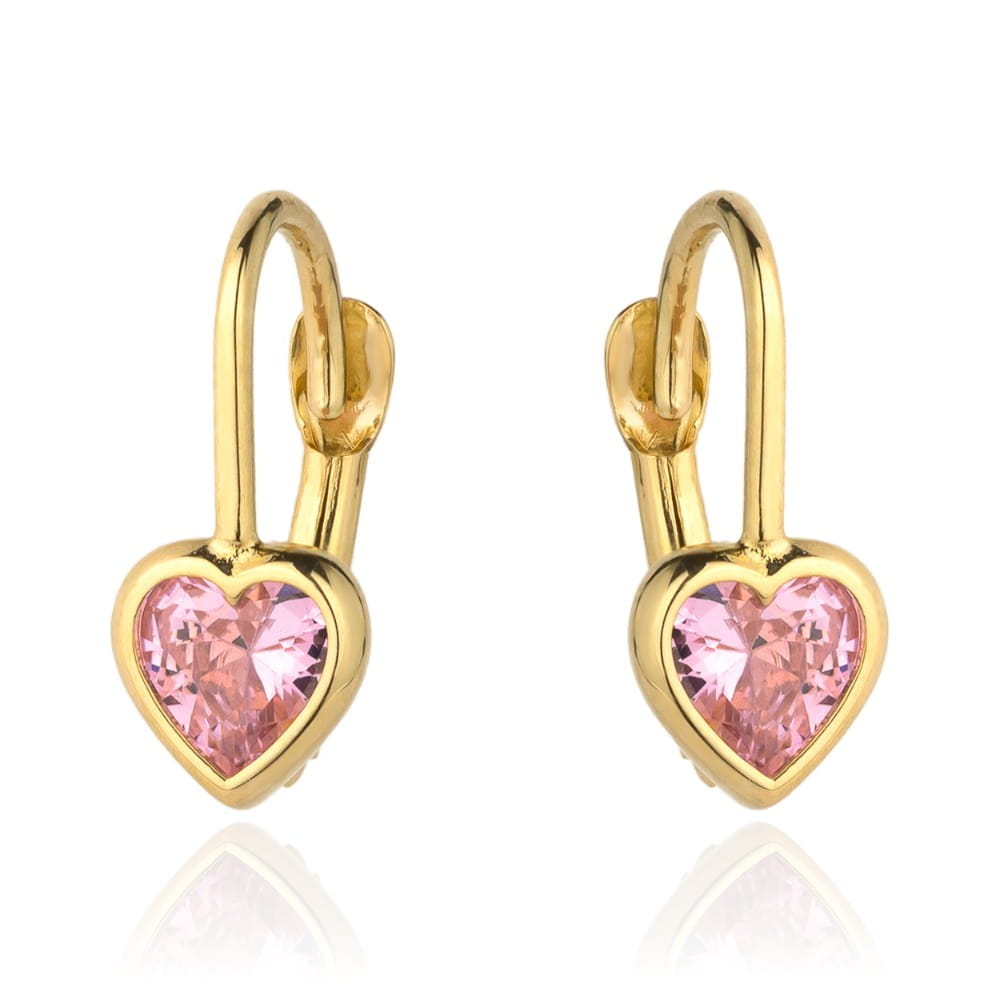 Kolczyki złote dla dziewczynki serca różowa cyrkonia angielskie zapięcie 585