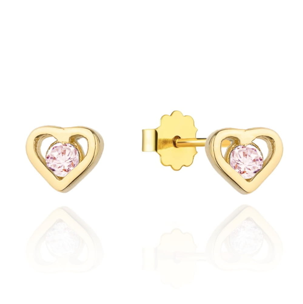 Kolczyki złote dla dziewczynki serduszka z różową cyrkonią 585 wkrętki