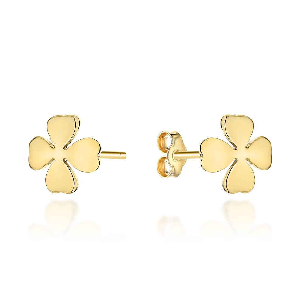Kolczyki złote gładkie koniczynki na sztyfcie