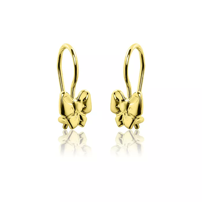 Kolczyki złote kokardki na biglu złoto 585 dla dziewczynki