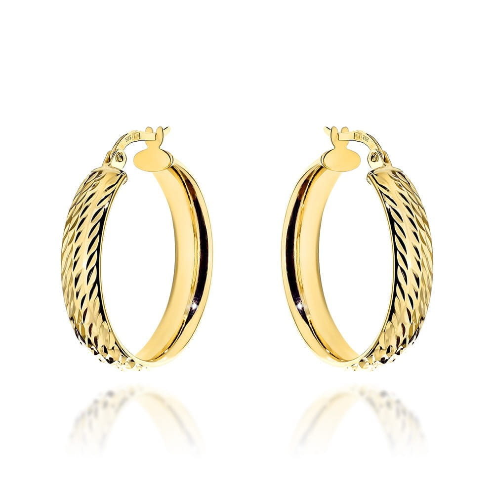 Kolczyki złote koła diamentowane szerokie próba 585 angielskie zapięcie