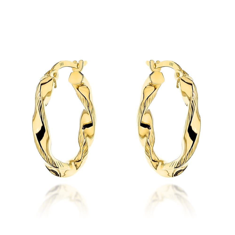 Kolczyki złote koła skręcone 20 mm lśniące angielskie zapięcie próba 585