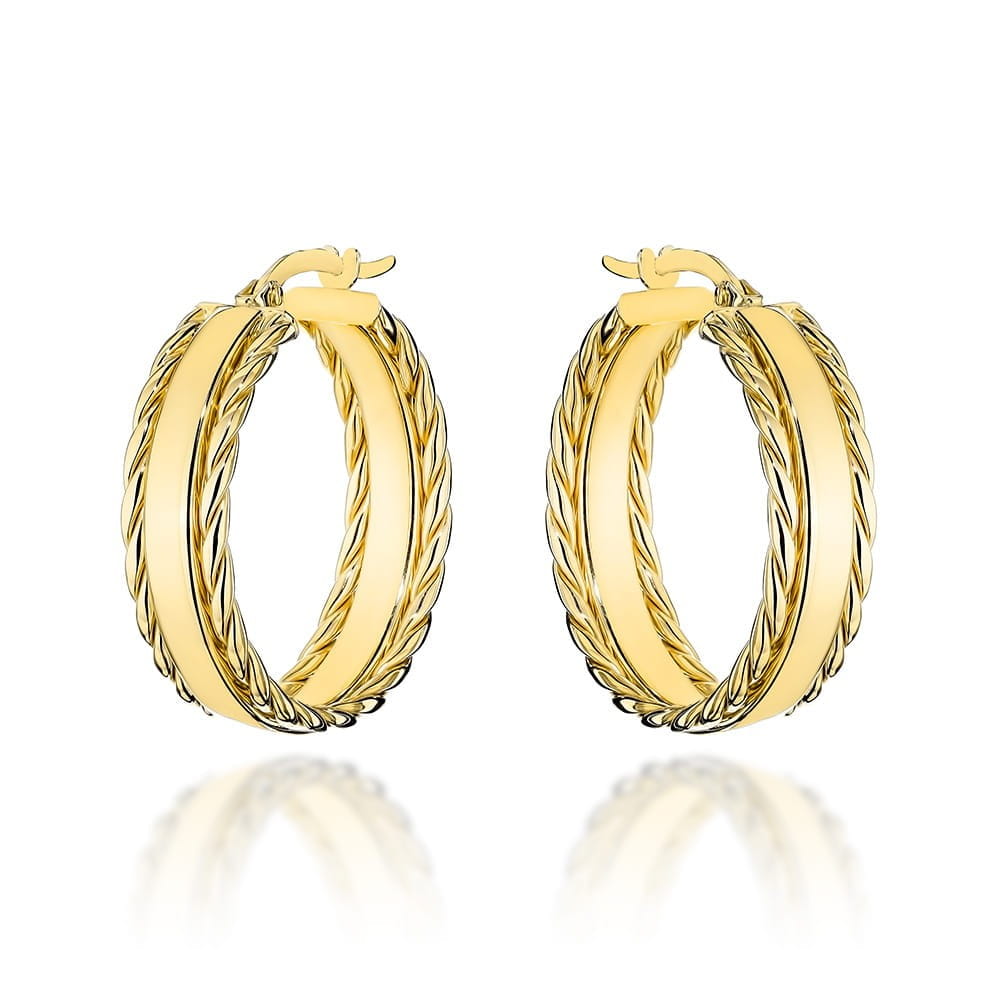Kolczyki złote koła z plecionym zdobieniem na bokach
