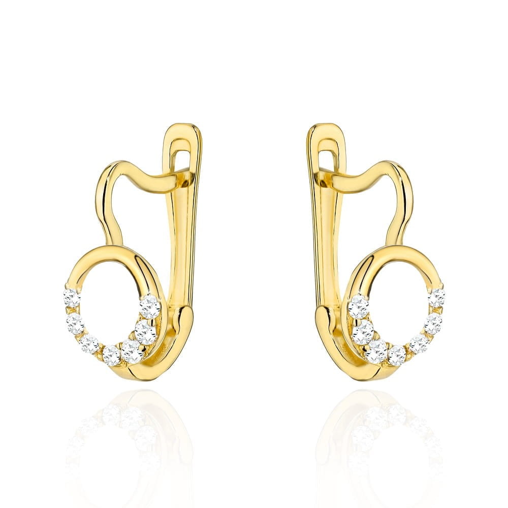 Kolczyki złote kółeczka z cyrkoniami na dole