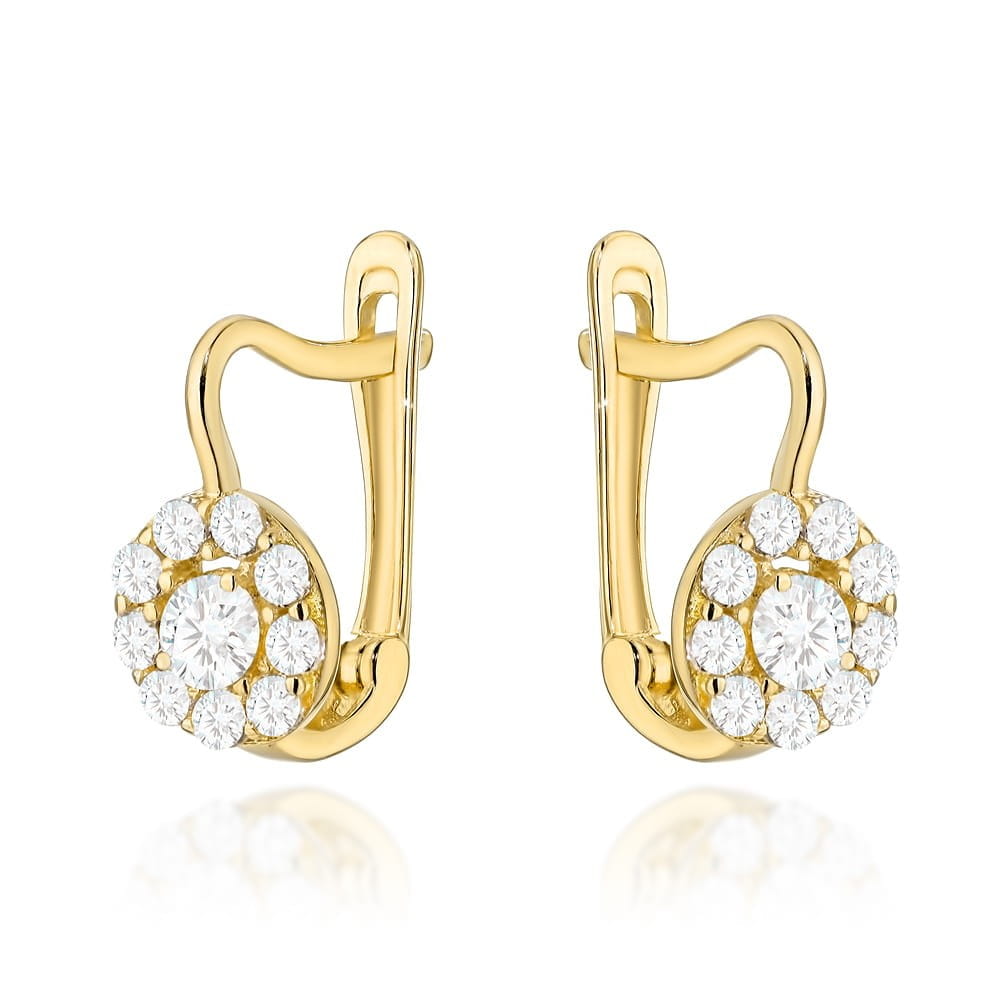 Kolczyki złote kółeczko wysadzane cyrkoniami na angielskim zapięciu