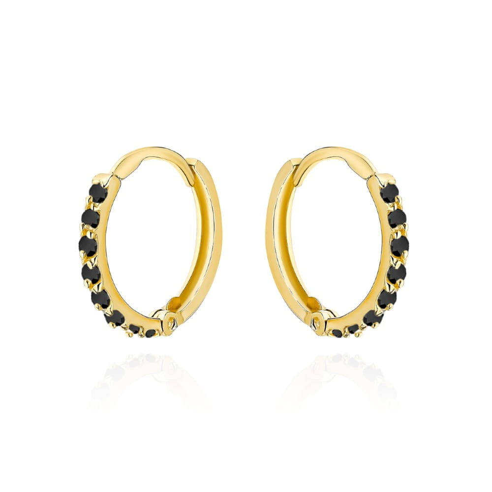 Kolczyki złote kółeczko wysadzane czarnymi cyrkoniami