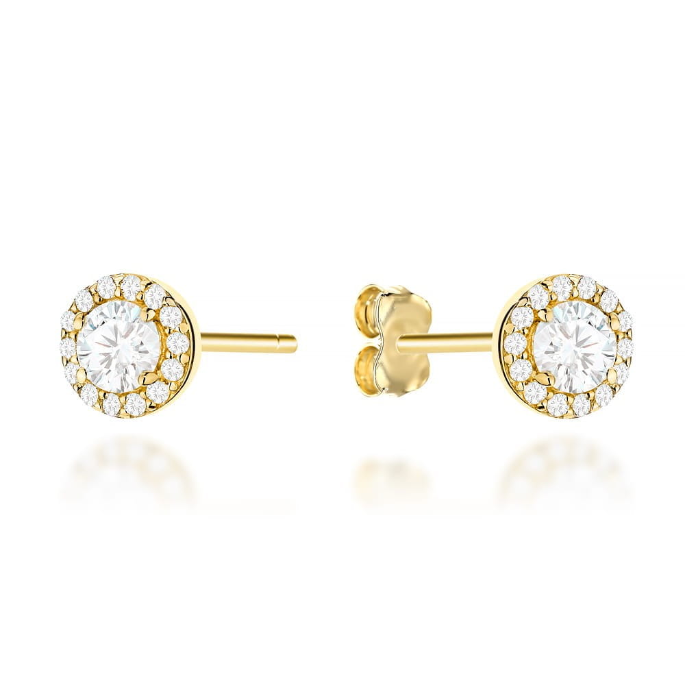Kolczyki złote kółka wysadzane cyrkoniami z centralnym kamieniem