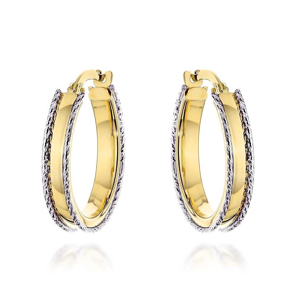 Kolczyki złote kółka zdobione na brzegach w dwóch kolorach złota