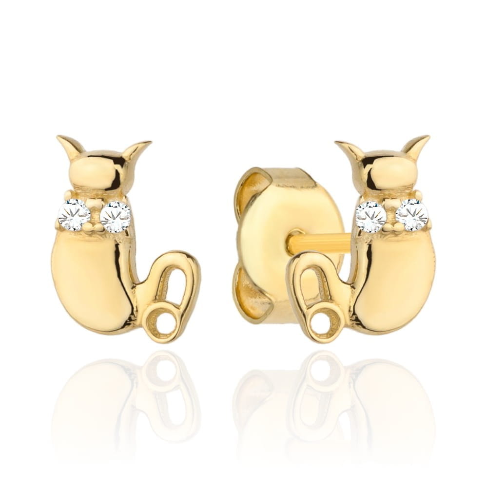 Kolczyki złote kotki dla dziewczynki 585 chrzest/ komunia /roczek
