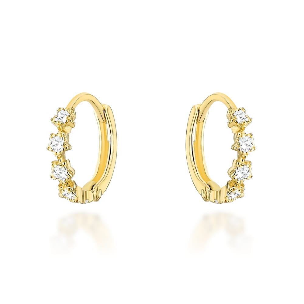 Kolczyki złote kwiatki z białymi cyrkoniami na kreolu