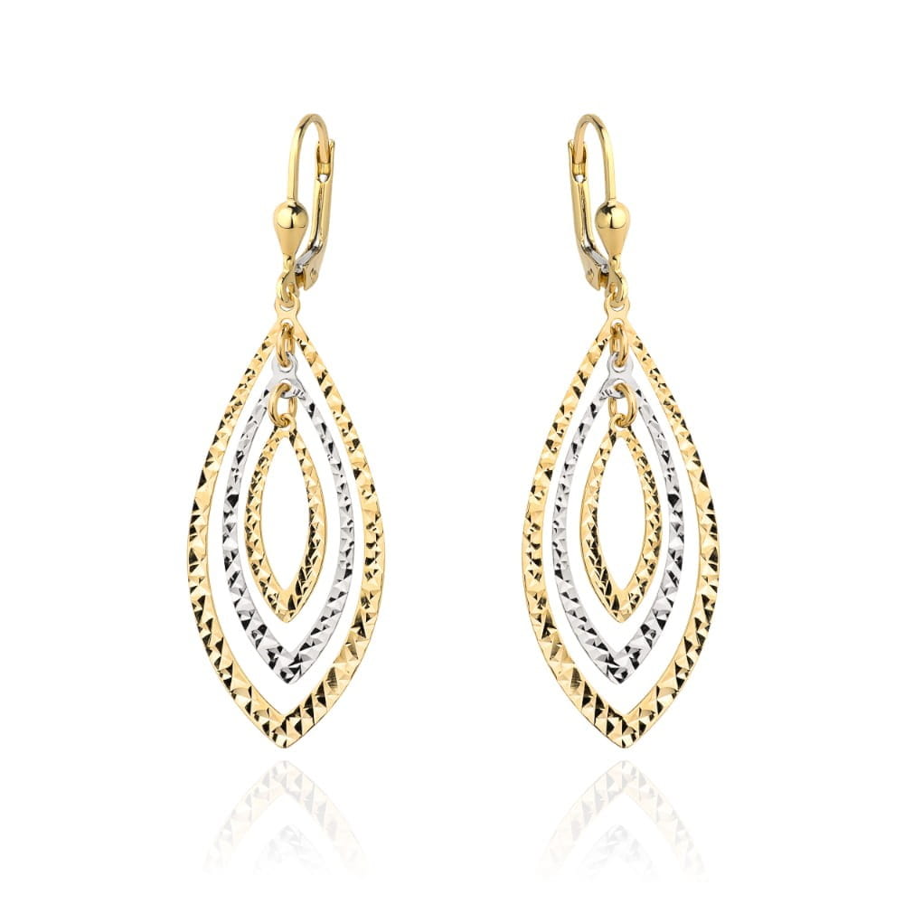 Kolczyki złote listki diamentowane z białym złotem próba 585 wiszące angielskie