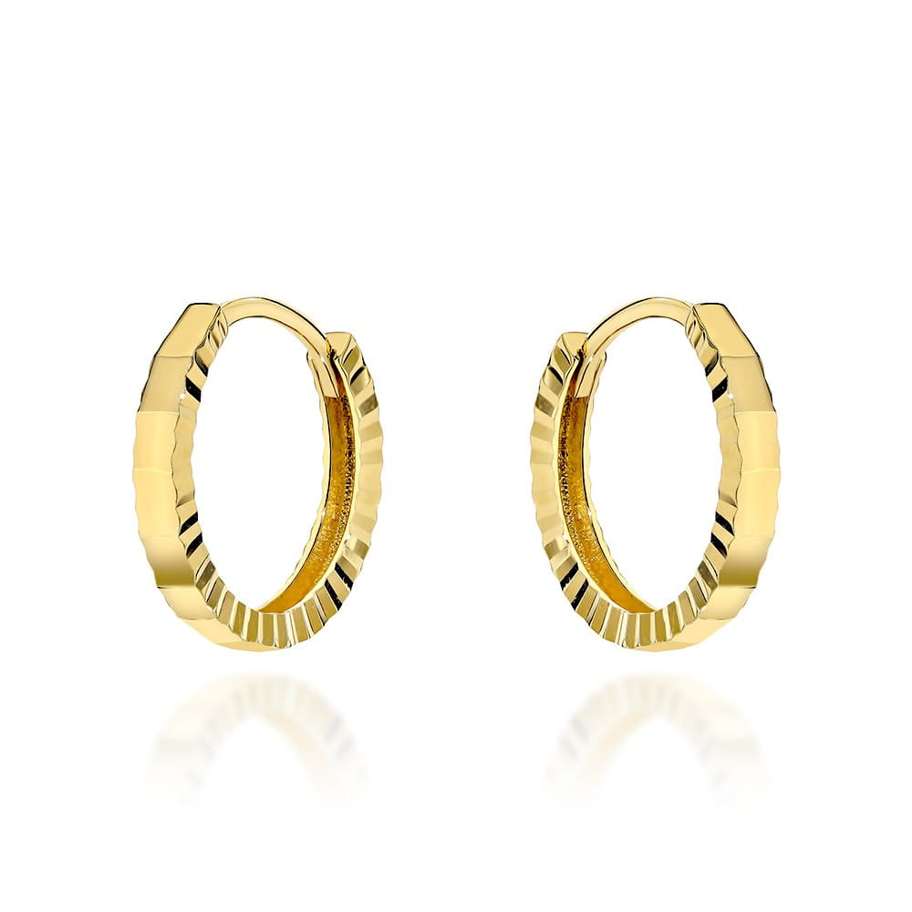 Kolczyki złote małe kółeczka zdobione diamentowaniem