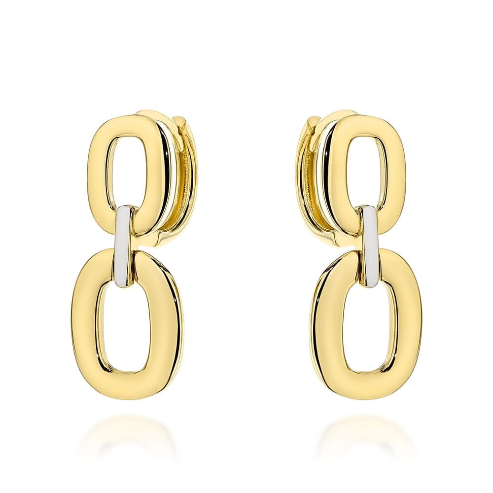 Kolczyki złote owale zdobione białym złotem na kreolu