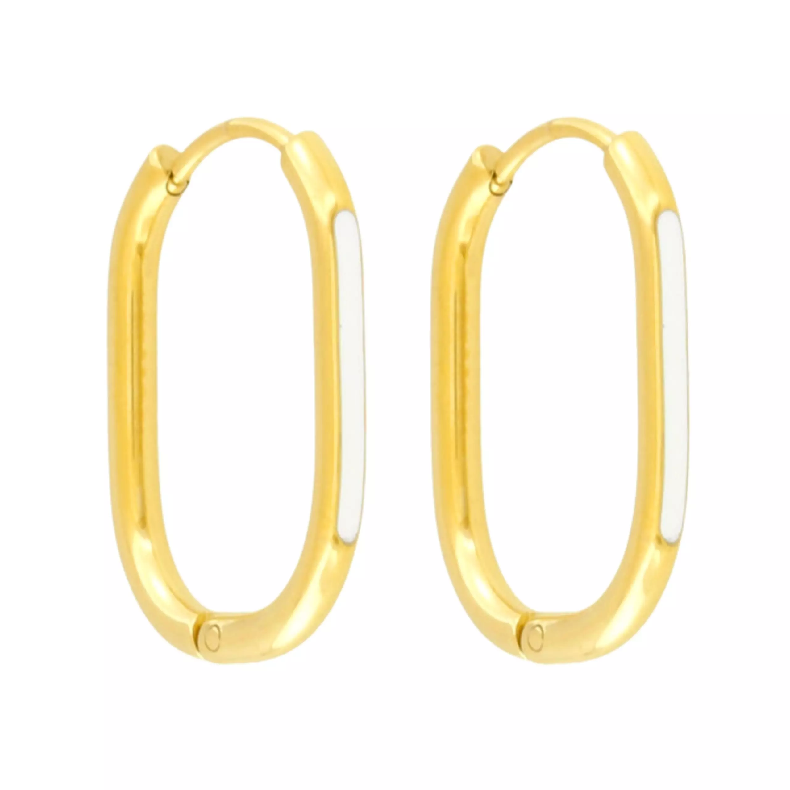 Kolczyki złote owalne z białą emalią, wykonane z wysokiej jakości stali chirurgicznej 316L - jest to gwarancja wytrzymałości i trwałości. Elipsy to najmodniejszy model kolczyków w tym sezonie. Wyjątkowy design przyciąga uwagę szykiem, elegancją i nowoczesnym stylem. Ponadczasowa biżuteria, która podkreśli Twoje piękno, doda blasku i dopełni każdą stylizację. Lekkie, wygodne, nietuzinkowe i uniwersalne, klasyka zawsze na czasie. Idealny upominek, który wzbogaci look każdej kobiety. Te kolczyki, to również idealny pomysł na prezent dla bliskiej osoby, która ceni sobie oryginalność i wyjątkowość. Biżuteria wykonana została, z najwyższej jakości materiałów, jest hipoalergiczna, bezpieczna dla skóry i nie powoduje reakcji alergicznej.