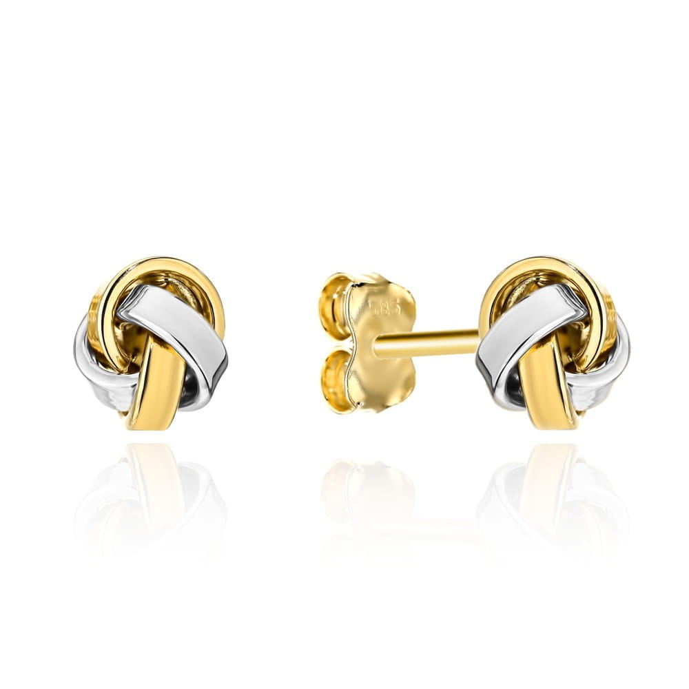 Kolczyki złote plecione kulki nowoczesne rodowane próba 585