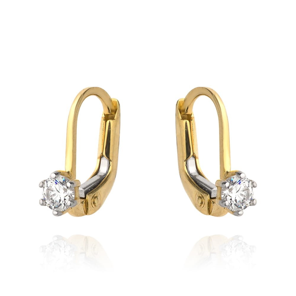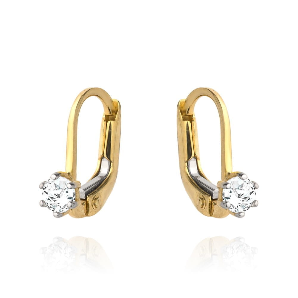 Kolczyki złote pojedyncza cyrkonia na angielskim zapięciu
