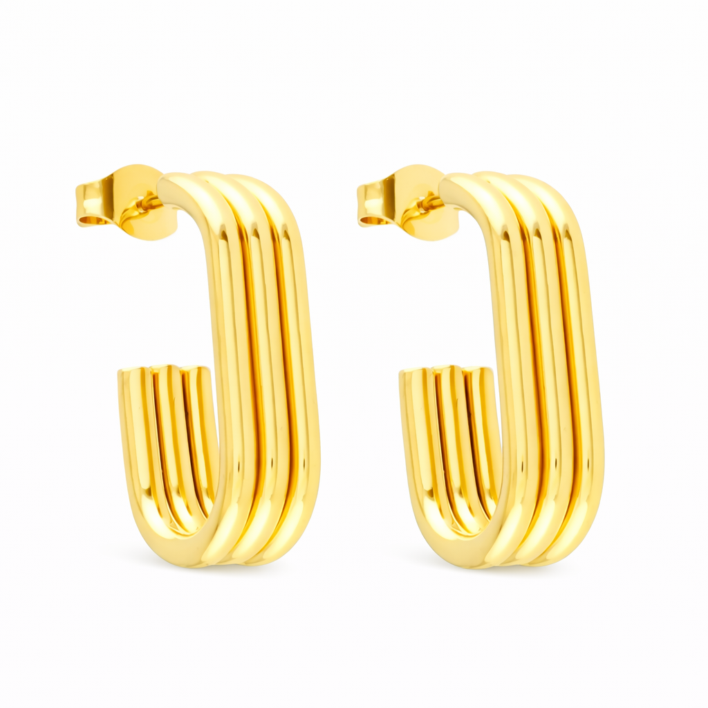 Kolczyki złote potrójne owalne, wykonane ze stali chirurgicznej. Efektowna i zarazem elegancka biżuteria, która prezentuje się niezwykle wyjątkowo. Posiadają zapięcie typu sztyft. Nowoczesne kolczyki w kształcie elipsy to najgorętszy trend tego sezonu. Ich potrójna faktura nadaje im atrakcyjności i dodaje wyjątkowego charakteru, który wyróżnia je spośród innych biżuterii. Kolczyki będą idealnym dodatkiem dla kobiet, które szukają unikalnej i pięknej biżuterii. Doskonale komponują się z różnymi stylizacjami. Biżuteria wykonana została, z najwyższej jakości materiałów, jest hipoalergiczna, bezpieczna dla skóry i nie powoduje reakcji alergicznej. Te kolczyki, to również idealny pomysł na prezent dla bliskiej osoby, która ceni sobie oryginalność i wyjątkowość.