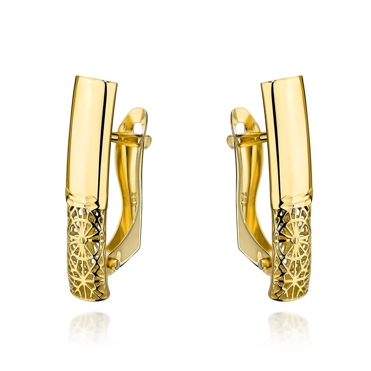 Kolczyki złote prostokąty z ażurowym zdobieniem