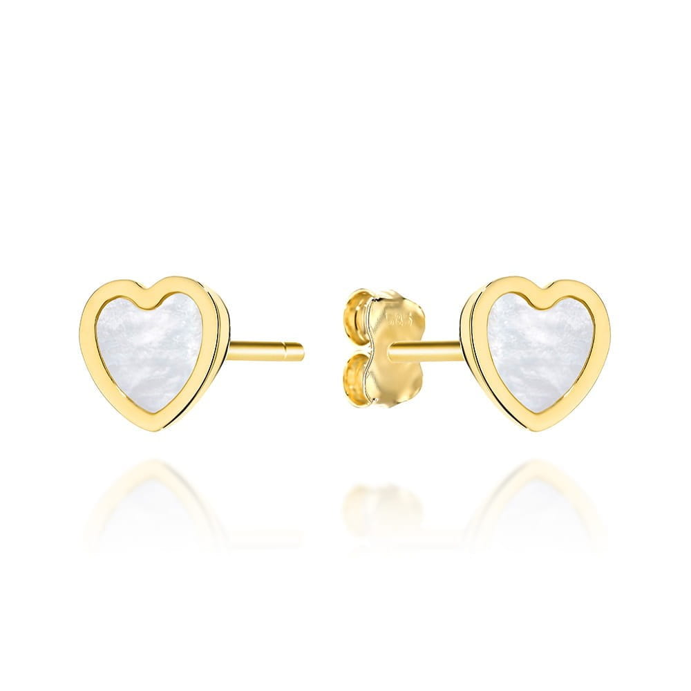 Kolczyki złote serca z masą perłową