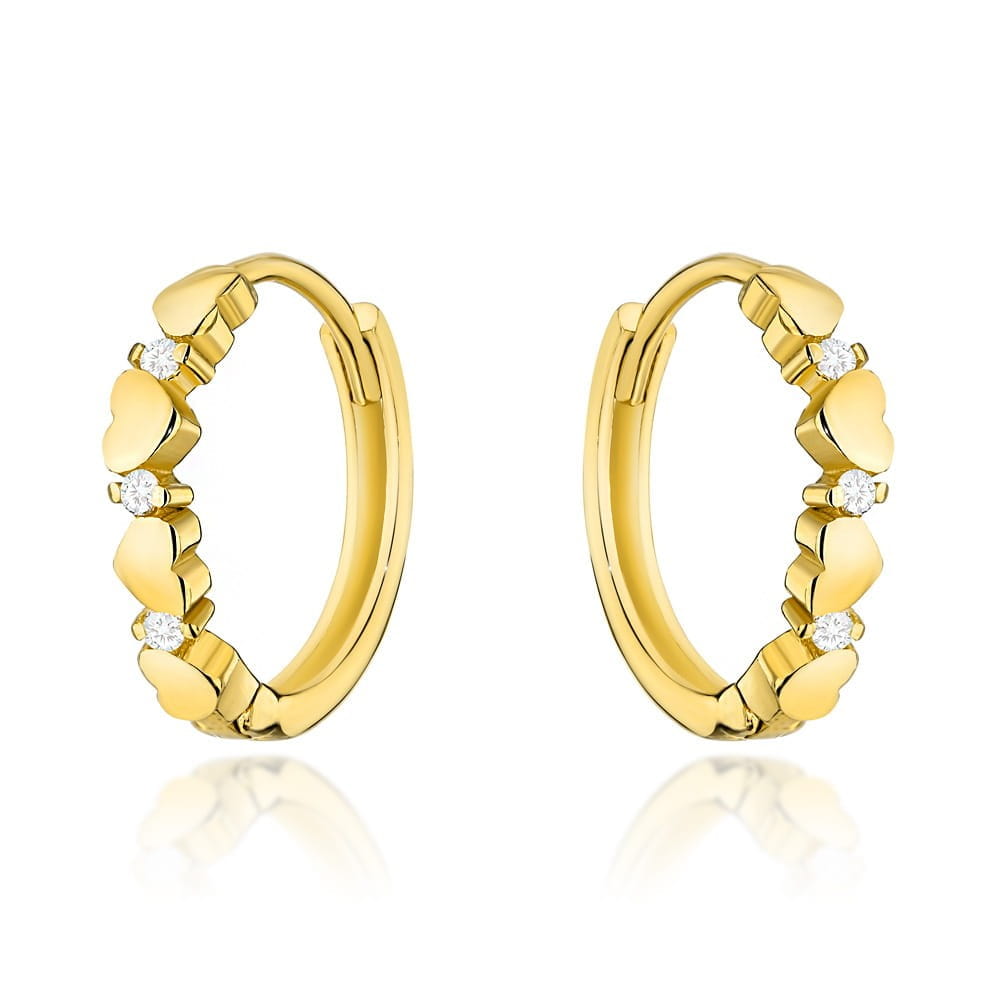 Kolczyki złote serduszka i cyrkonie