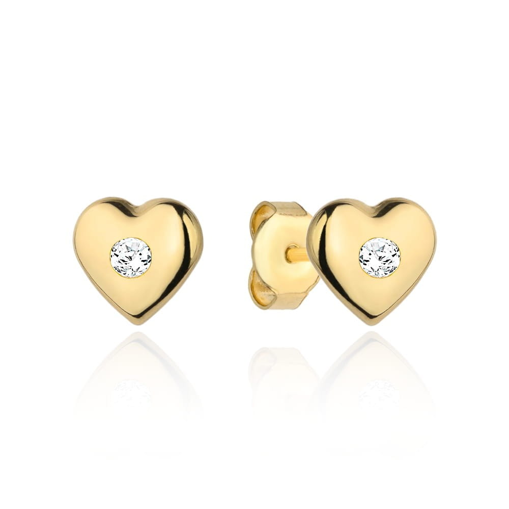 Kolczyki złote serduszka z cyrkonią 585/ Kolczyki na Chrzest, komunię, Roczek