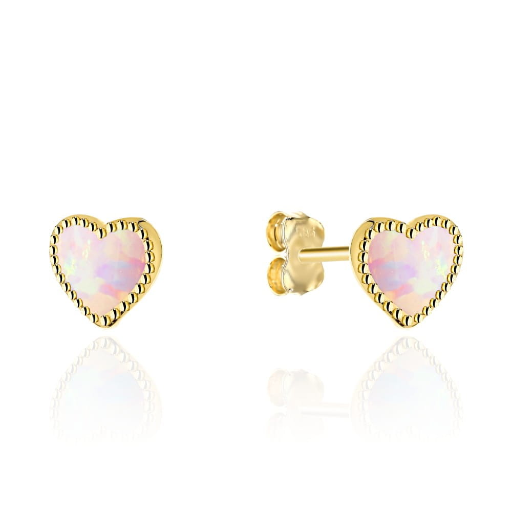 Kolczyki złote serduszka z różowym opalitem na sztyfcie