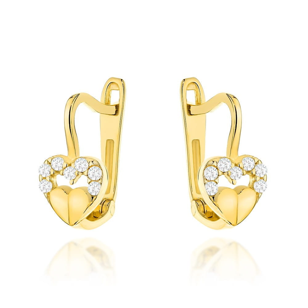 Kolczyki złote serduszko w sercu z cyrkonii na angielskim zapięciu
