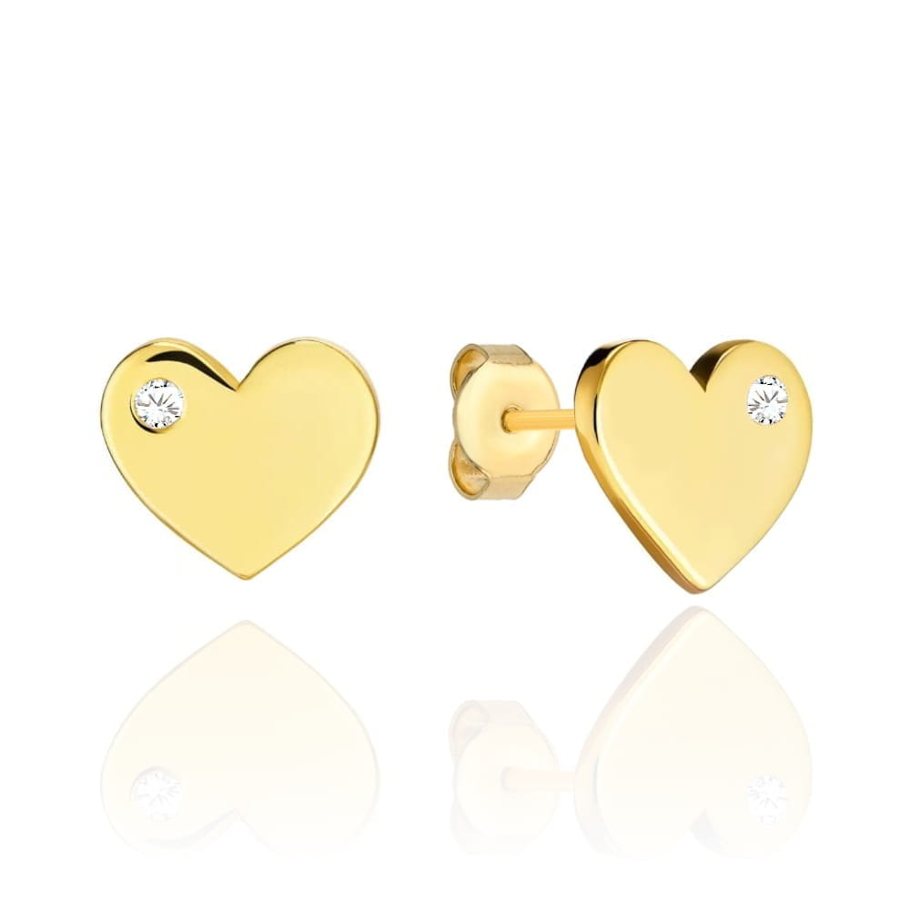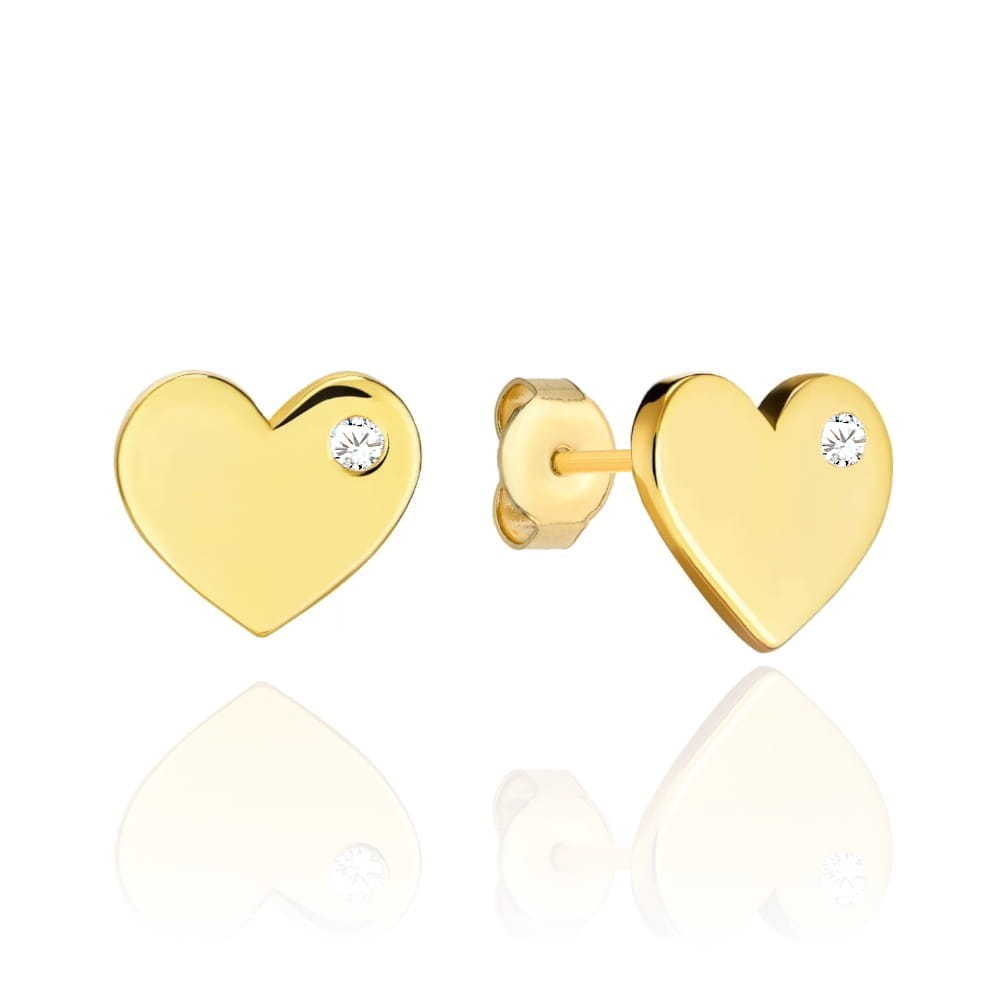 Kolczyki złote serduszko z białą cyrkonią z boku