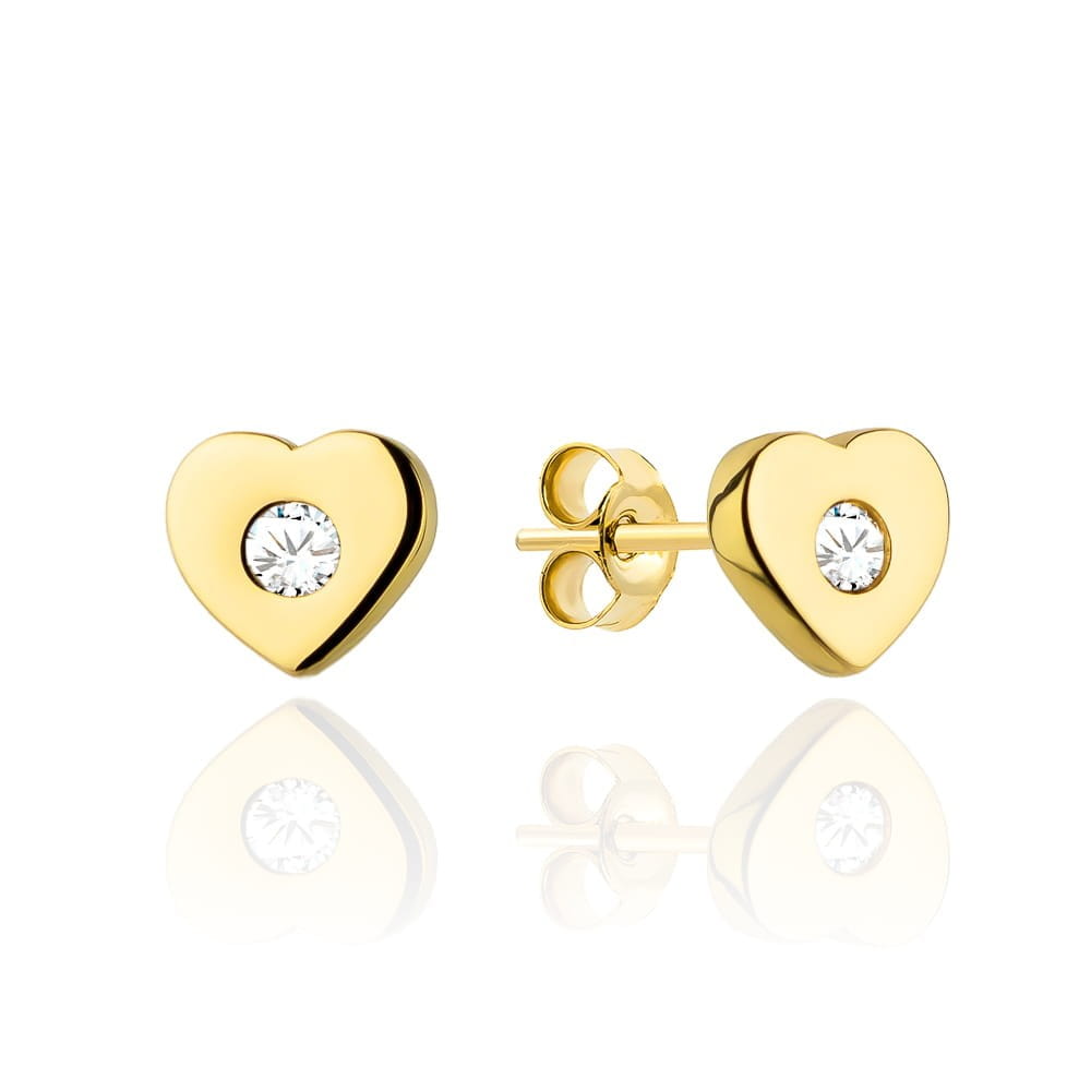 Kolczyki złote serduszko z cyrkonią na środku dla dziewczynki próba 585