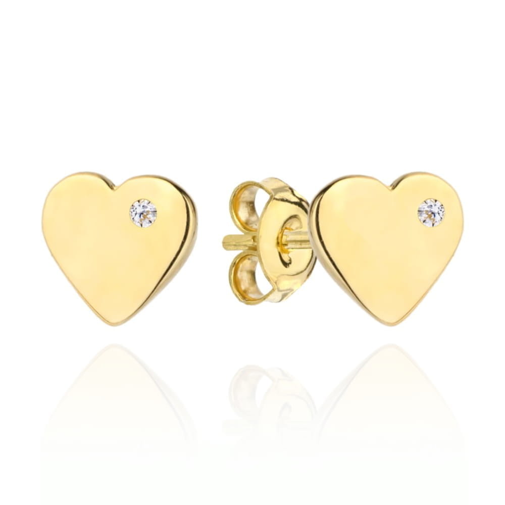 Kolczyki złote serduszko z cyrkonią z boku na Chrzest, Roczek, Komunię