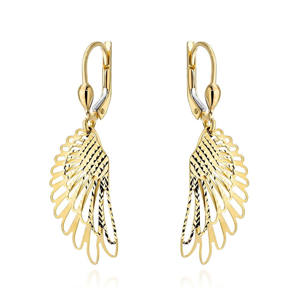 Kolczyki złote skrzydła zdobione diamentowaniem 585