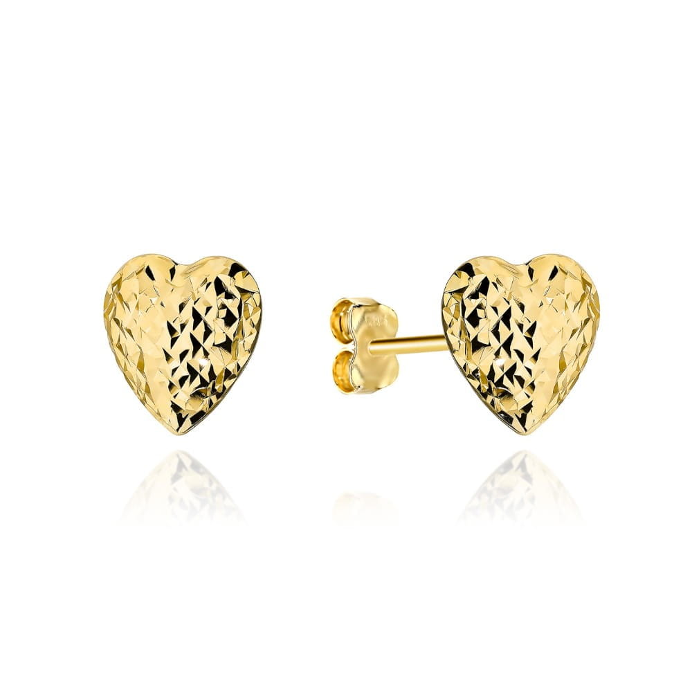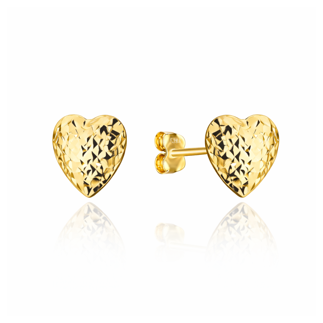 Piękne ponadczasowe kolczyki w kształcie serca, wykonane ze złota próby 585 powierzchnia diamentowana pięknie odbija światło. Kolczyki idealne jako prezent dla dziewczyny, żony, mamy, córki, z wielu różnych okazji np: Chrztu, Komunii Świętej, Dnia Mamy. Rozmiar 6 mm x 6 mm to idealny rozmiar mieszczący się na płatku ucha.