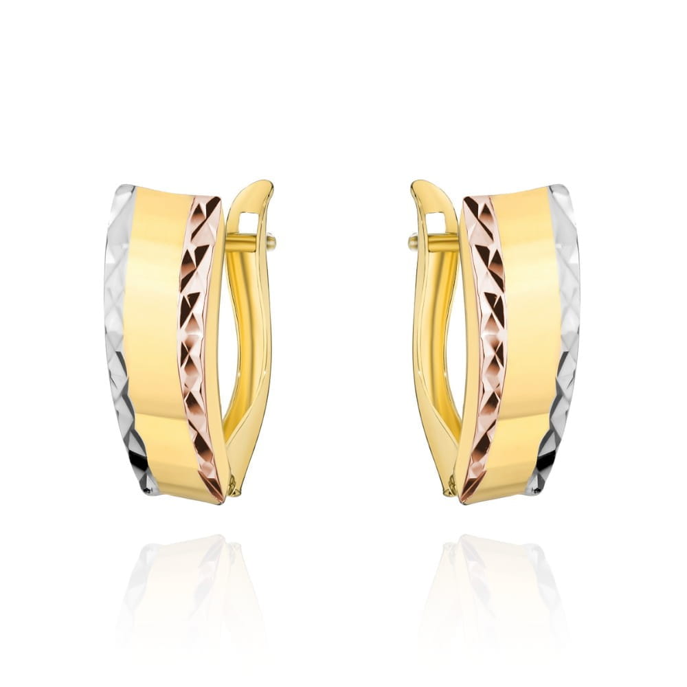 Kolczyki złote w trzech kolorach złota próba 585 diamentowane zapięcie angielskie