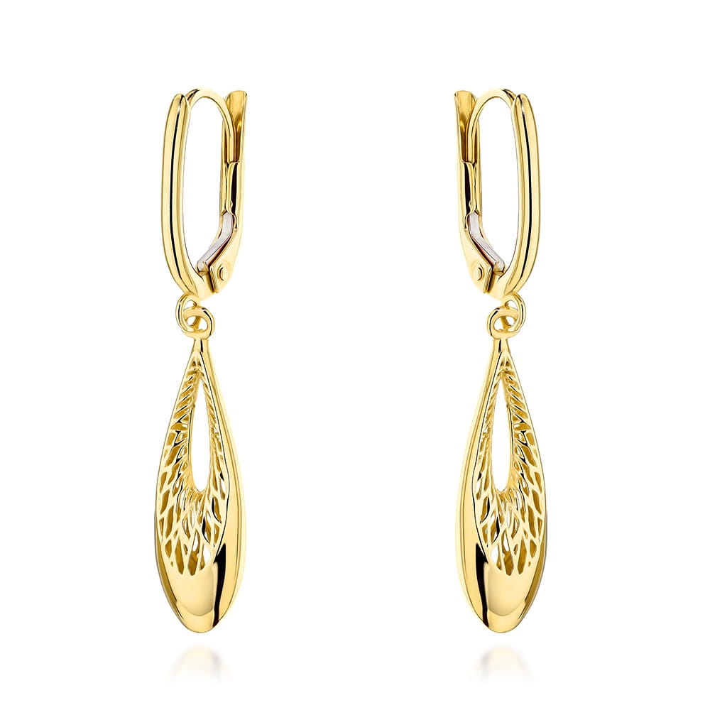 Kolczyki złote wiszące łezki z ażurem próba 585 angielskie zapięcie