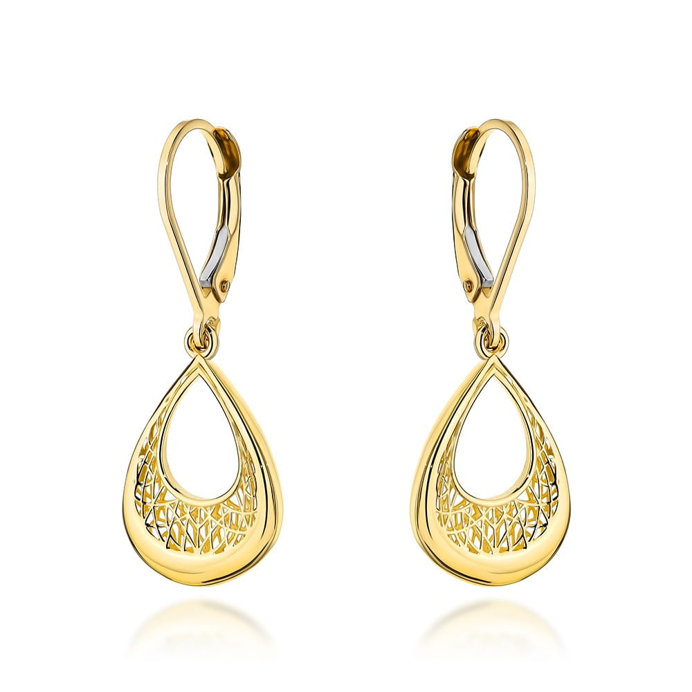 Kolczyki złote wiszące łezki z ażurowym zdobieniem angielskie próba 585