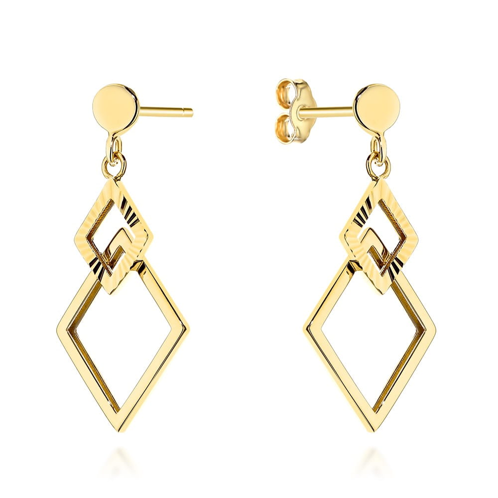 Kolczyki złote wiszące romby zdobione diamentowaniem 585