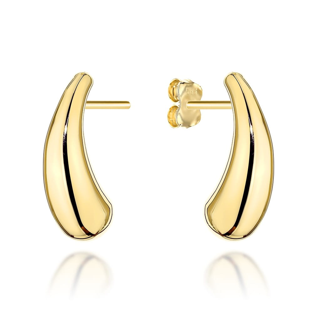 Złote kolczyki wydłużone krople na sztyfcie próby 585 to biżuteria, która zachwyca subtelną elegancją i ponadczasowym stylem. To propozycja dla kobiet, które cenią klasykę i piękno w minimalistycznej formie. Piękne lśniące kolczyki damskie przyciągają uwagę swoim blaskiem, a gładka powierzchnia polerowana na wysoki połysk dodaje im niezwykłej szlachetności i sprawia, że prezentują się doskonale w każdych okolicznościach.