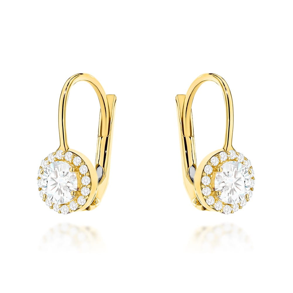 Kolczyki złote z centralną cyrkonią w oprawie mniejszych próba 585 angielskie