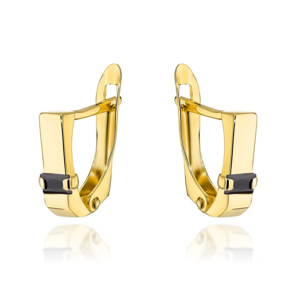 Kolczyki złote z czarnym prostokątnym kamieniem