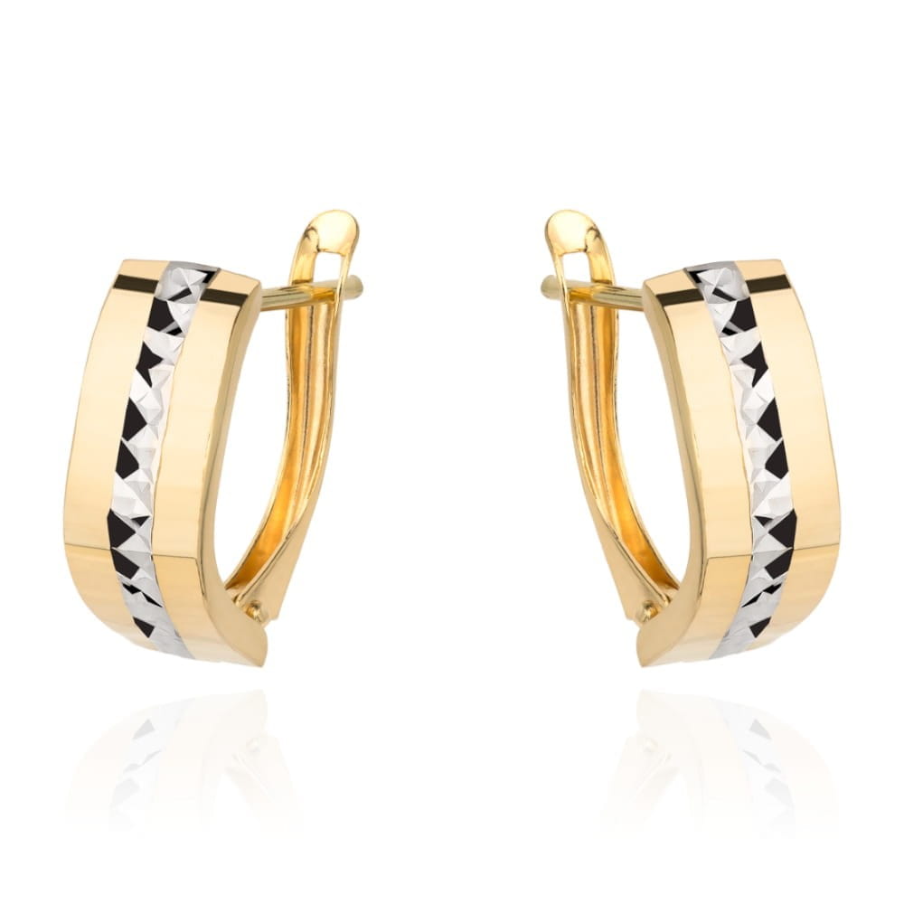 Kolczyki złote z diamentowaniem i gładkimi brzegami
