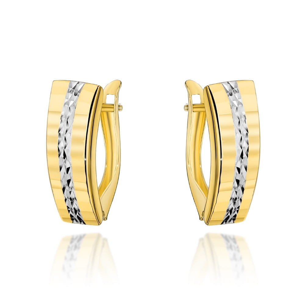 Kolczyki złote z diamentowaniem na środku w dwóch kolorach złota