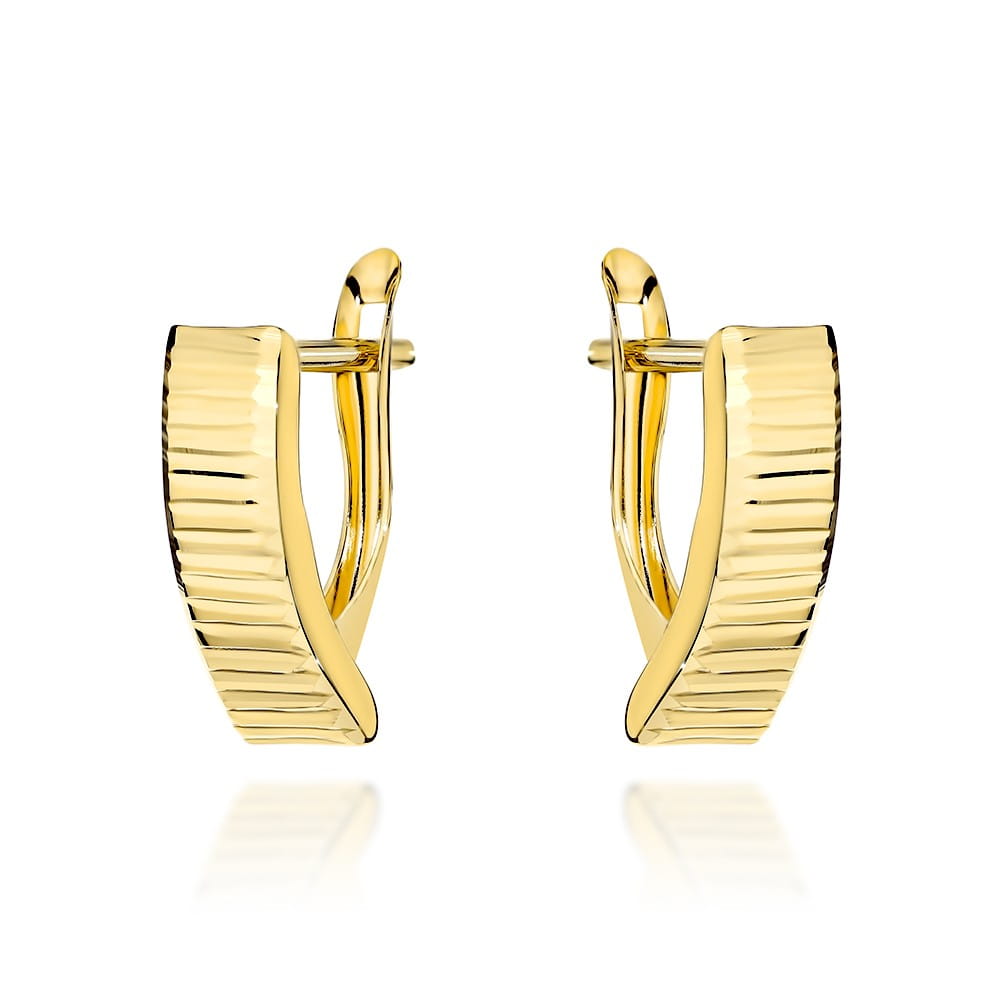 Kolczyki złote z diamentowanymi poprzecznymi paskami