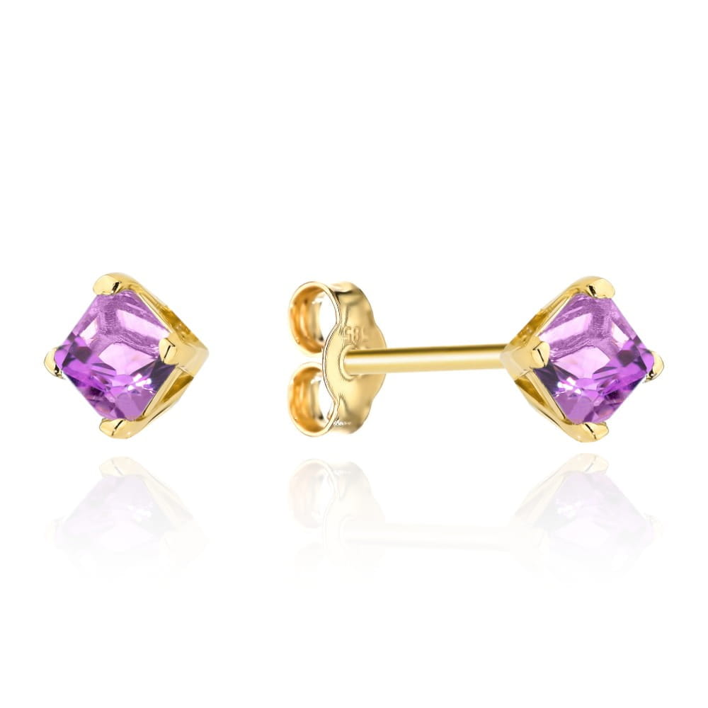 Kolczyki złote z kolekcji "COLORFUL STONE" - ametyst kwadrat na sztyfcie