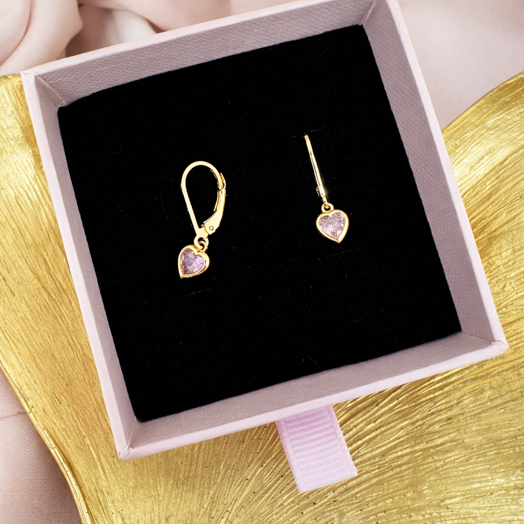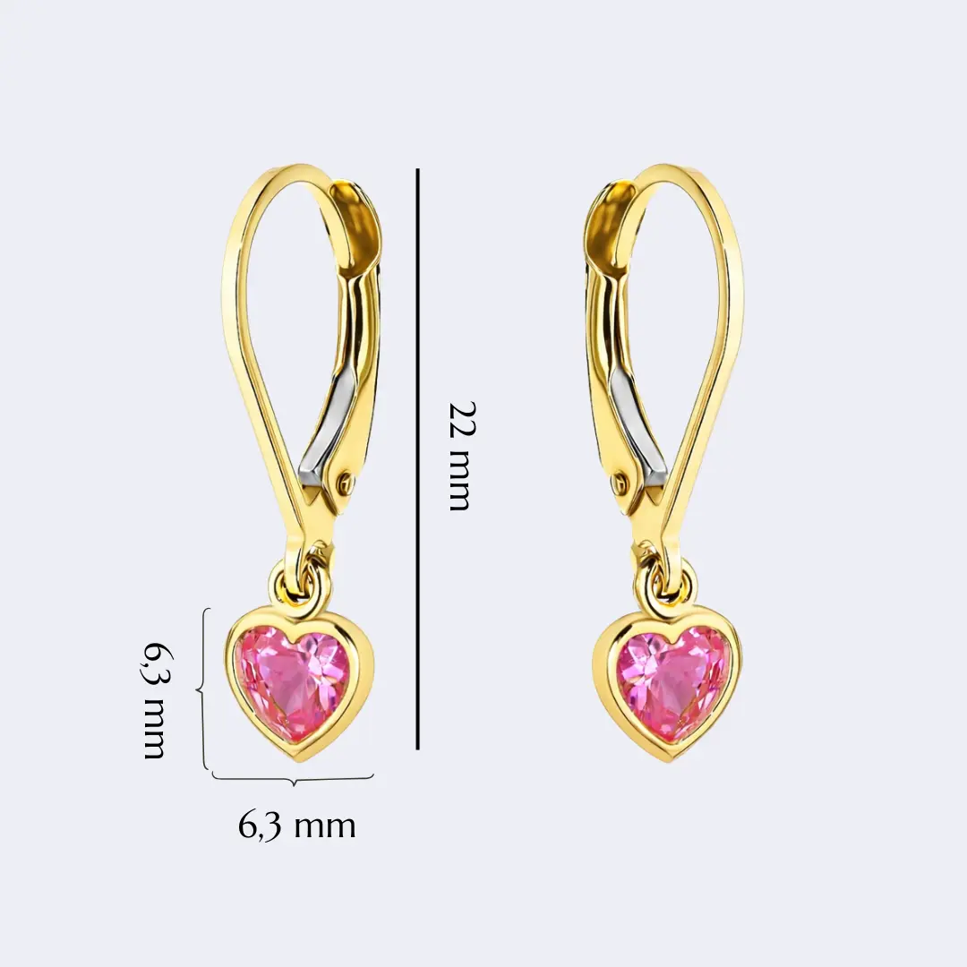 Kolczyki dziecięce posiadają wygodne angielskie zapięcie, które zapewnia stabilność i bezpieczeństwo noszenia nawet przez najmłodsze dziewczynki. Wiszące serduszka zostały ozdobione lśniącymi cyrkoniami w kolorze różowym, które pięknie odbijają światło i dodają kolczykom wyjątkowego uroku. Długość całkowita 22 mm oraz rozmiar serduszka 6,3 mm sprawiają, że kolczyki prezentują się bardzo elegancko, a jednocześnie pozostają lekkie i komfortowe.