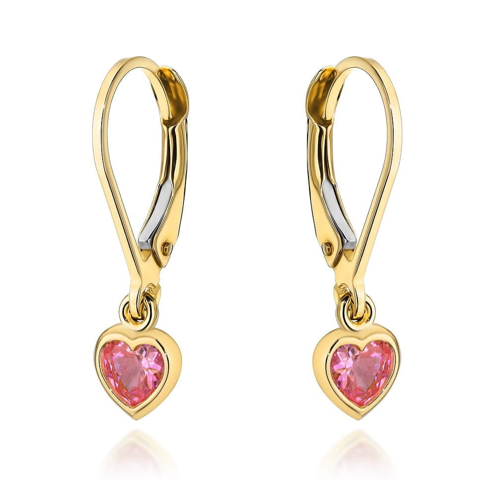 Kolczyki złote z wiszącym serduszkiem dla dziewczynki angielskie 585